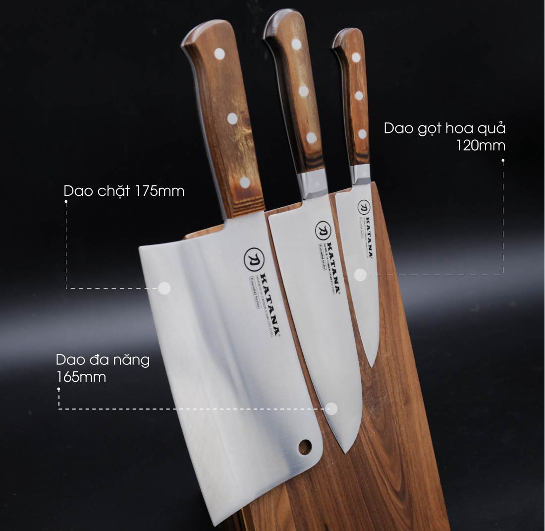 Bộ 3 chiếc dao bếp cao cấp thương hiệu KATANA (MADE IN VIETNAM) - Dao chặt - Dao thái - Dao gọt hoa quả - SETKATA001