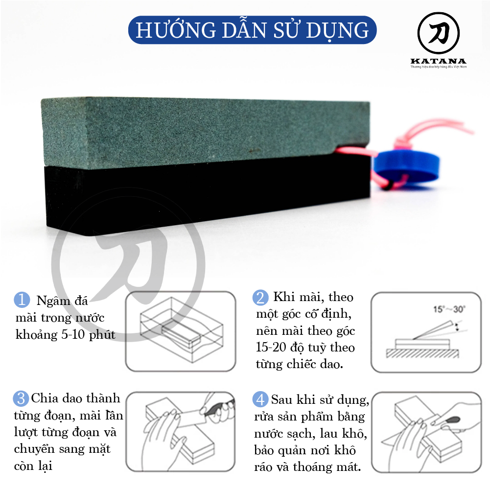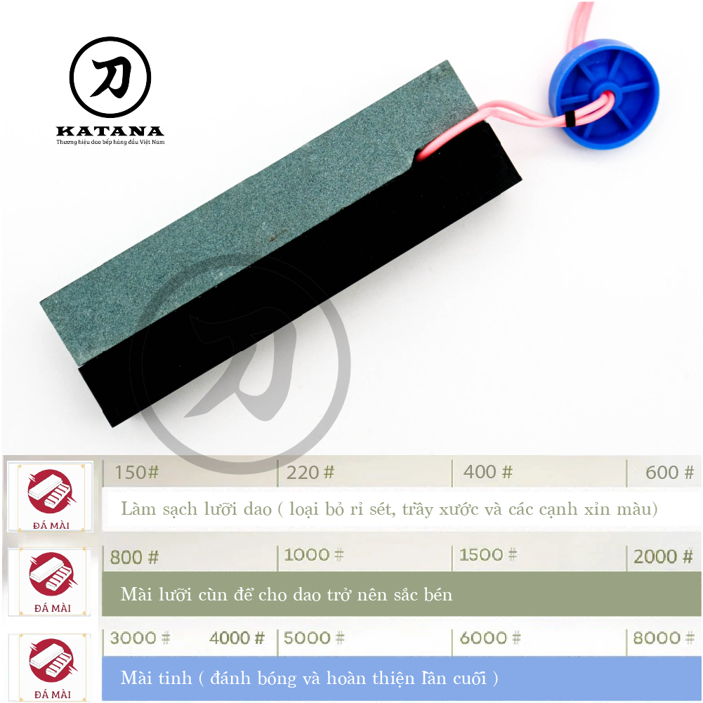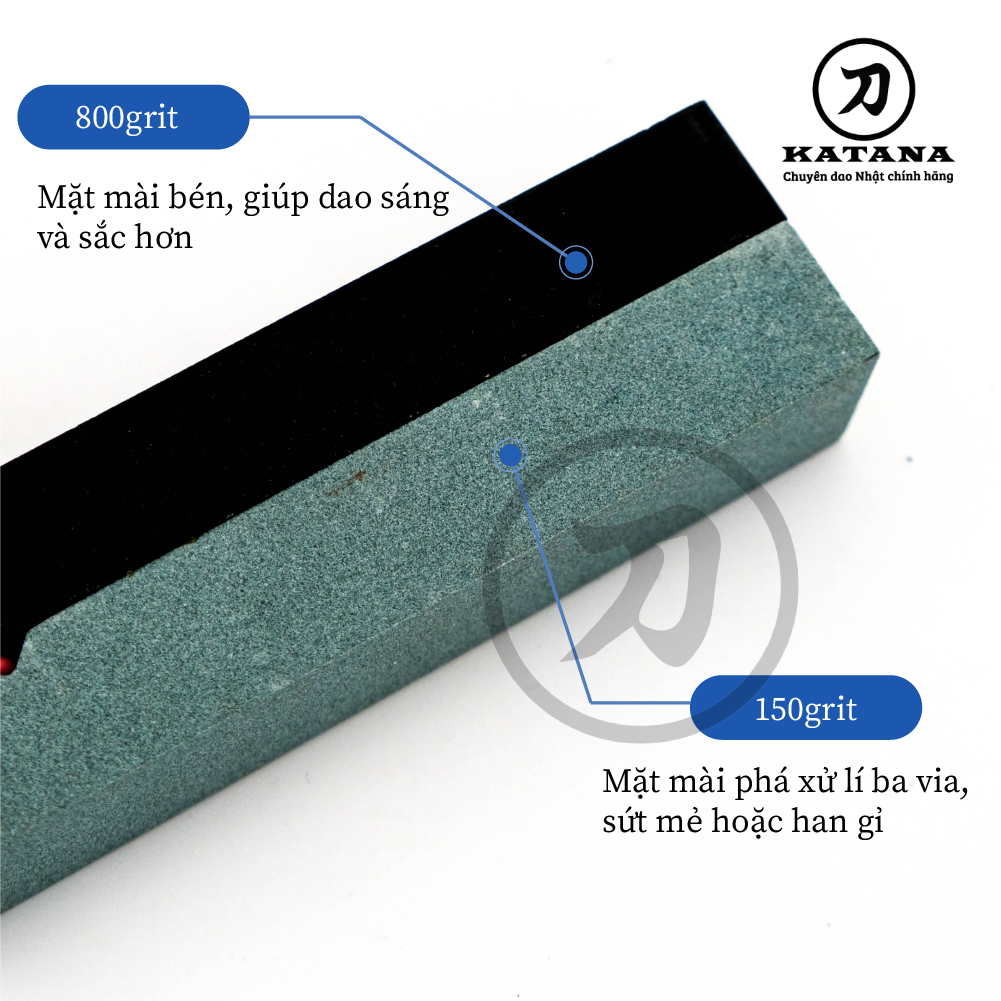 • Đá có 2 mặt màu giúp nhanh chóng mài đi vết sứt mẻ giúp dao trở nên sắc bén