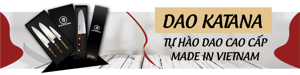 Dao bếp cao cấp KATANA - dòng dao sản xuất công nghiệp đầu tiên tại Việt Nam, mang thương hiệu KATANA (Việt Nam) - được sản xuất hoàn toàn bởi người Việt với nguồn nguyên liệu cao cấp nhập khẩu từ Nhật Bản. Với những đặc điểm ưu việt về độ sắc - độ giữ cạnh sắc - độ bền cùng chi phí hợp lý so với dao Nhật - dao bếp KATANA được tin dùng bởi khách hàng gia đình cho tới đầu bếp chuyên nghiệp.