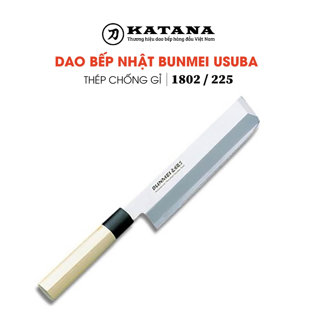 - Dao Usuba là dao làm bếp của Nhật Bản với lưỡi thẳng, vuông giúp việc vệ sinh và cắt rau trở nên dễ dàng. Nặng hơn dao Nakiri, dao BUMNEI Usuba được yêu thích bởi các đầu bếp Nhật Bản.