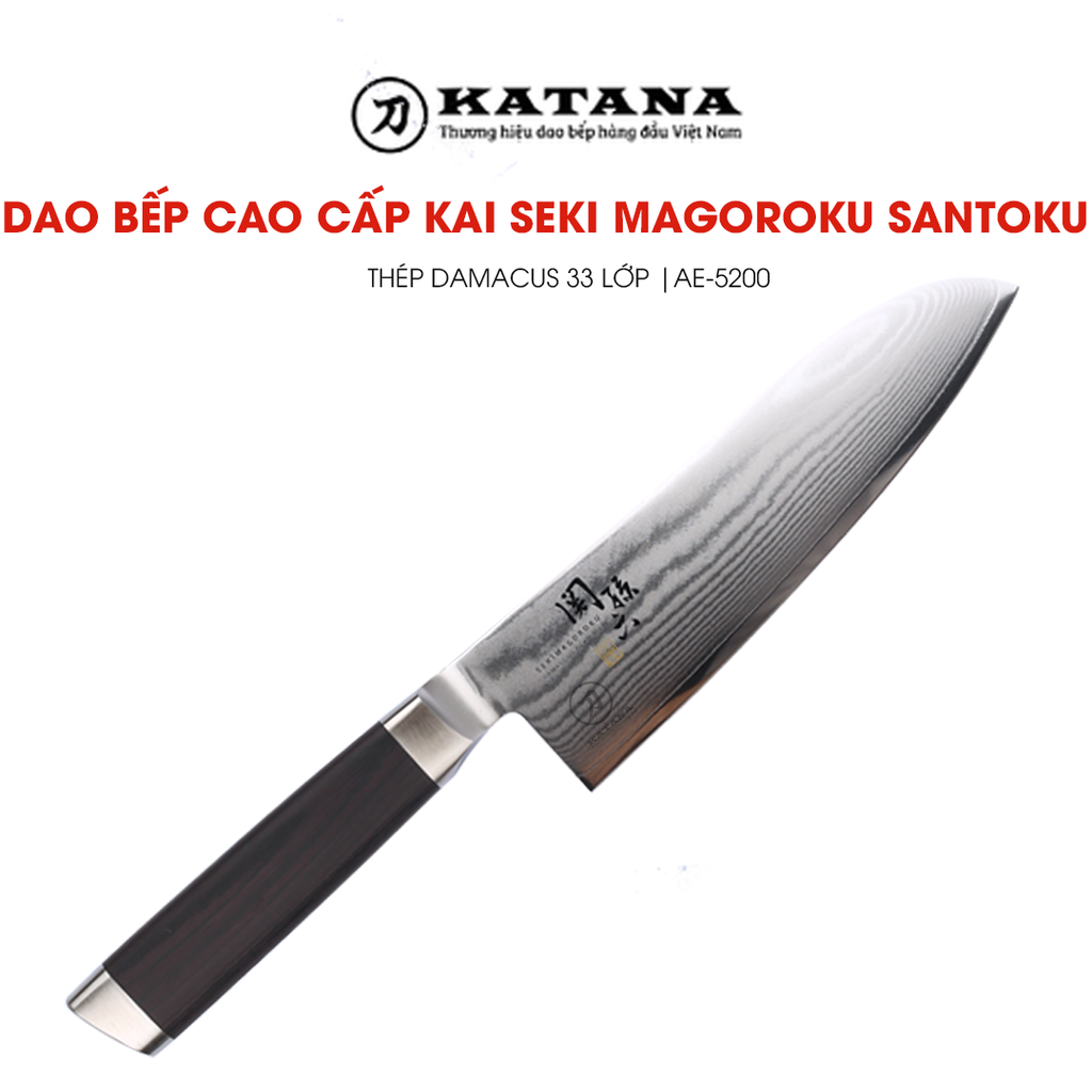 Dao thái đa năng Nhật Bản cao cấp KAI Seki Magoroku Damascus 33 lớp VG-10 Santoku - AE-5200 (165mm)