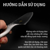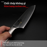 - Lưỡi dao với kiểu dáng bo tròn, mũi dao nhọn, sắc bén khi cắt thái