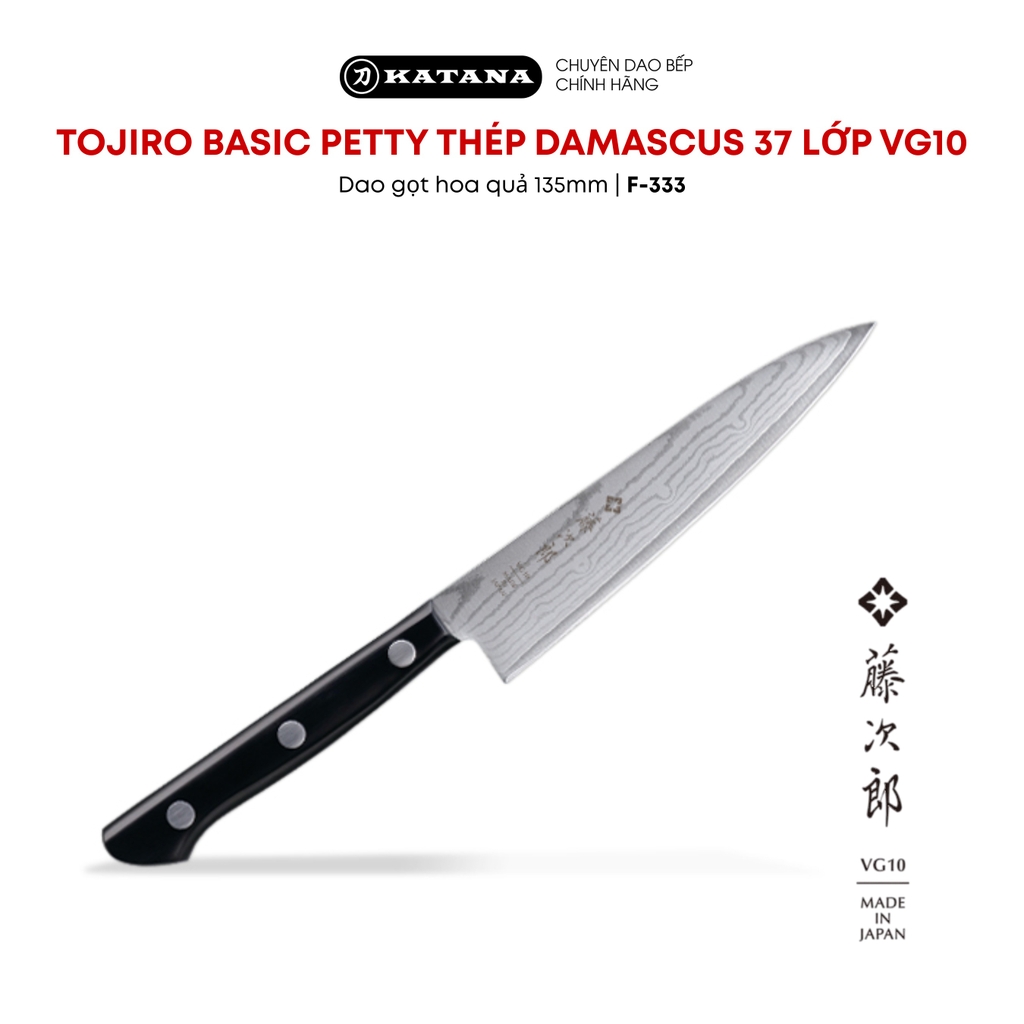 Dao bếp Nhật cao cấp TOJIRO BASIC Petty thép Damascus 37 lớp VG10 - Dao gọt hoa quả 135mm F-333