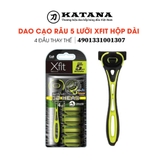Dao cạo râu 5 lưỡi cao cấp Nhật Xfit 5 blade màu xanh 4 đầu thay (hộp dài)
