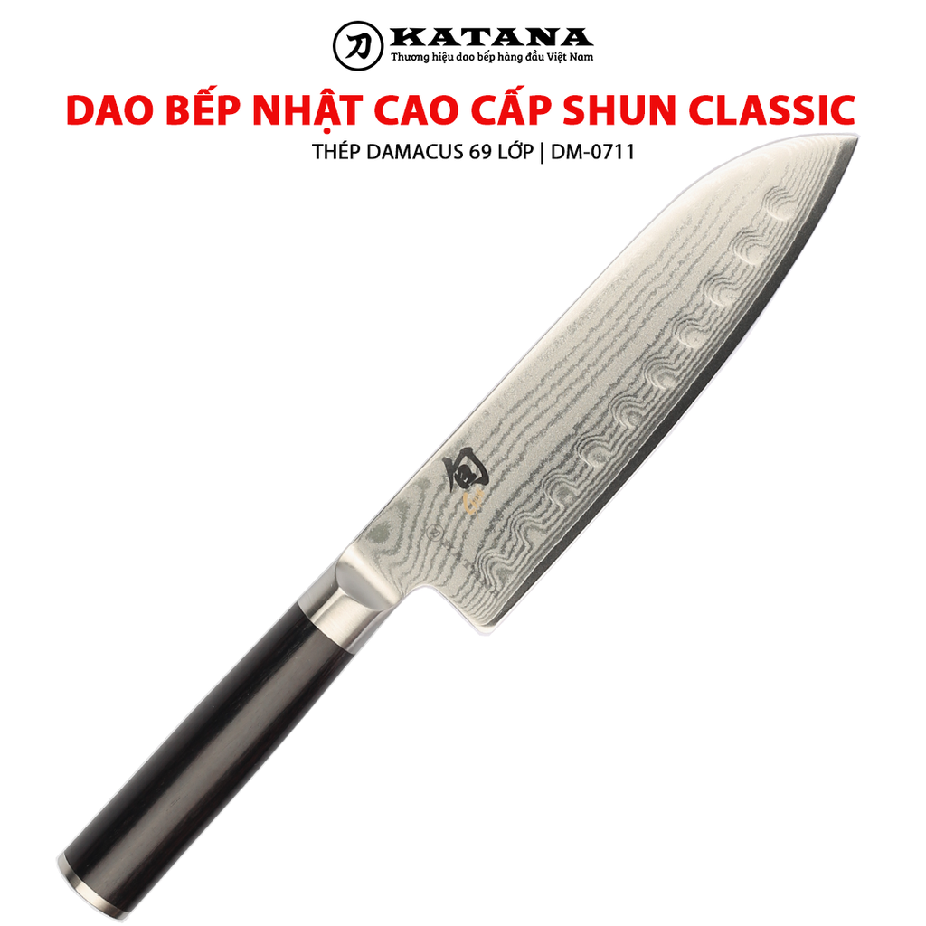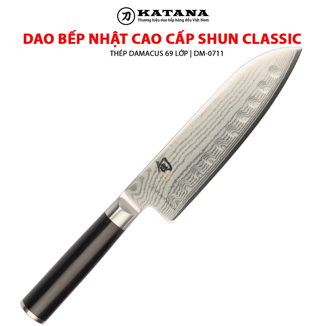 Dao bếp Nhật cao cấp Shun Classic H.G. Santoku - Dao thái đa năng thép Damascuss 69 lớp DM0718 (180mm)