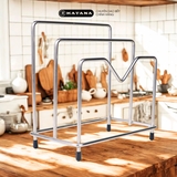Kệ để thớt, nắp vung 2 ngăn thương hiệu KATANA INOX 201 chống gỉ dày 5mm (18x18x10cm)