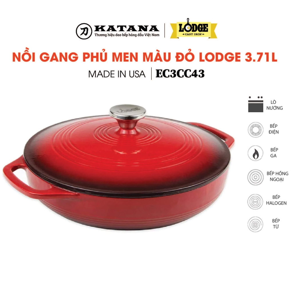 Lodge - Nồi gang phủ men màu đỏ - 3.71L
