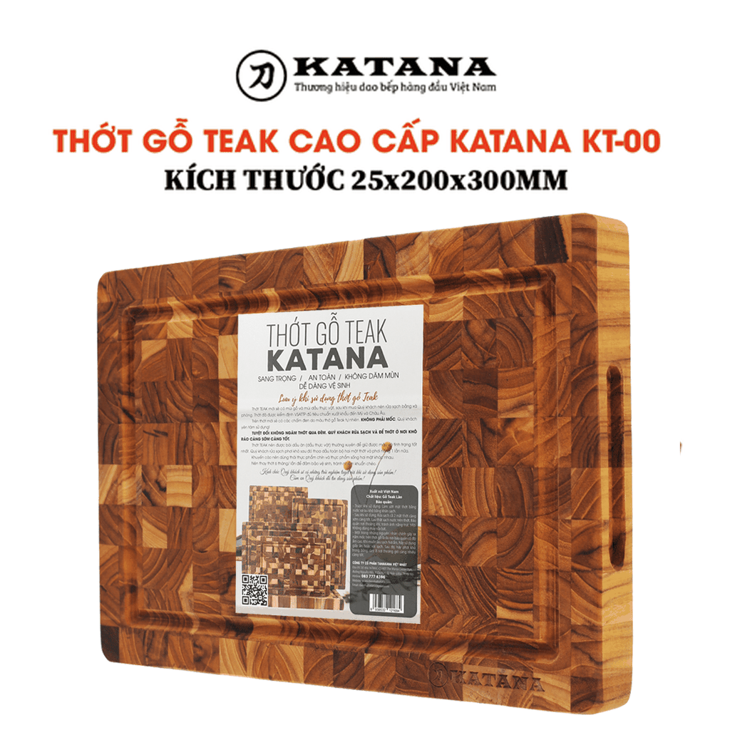 Thớt gỗ teak cao cấp KATANA loại dày 2.5cm KT00 - thớt hình chữ nhật kích thước 25x200x300mm