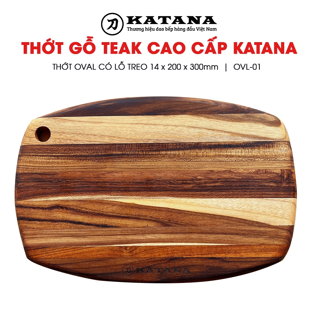 Thớt gỗ teak cao cấp KATANA - Thớt Oval có lỗ treo