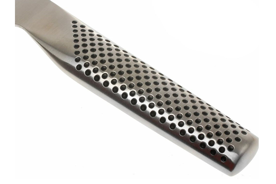 3. Dòng dao Global có một thiết kế nguyên khối sang trọng đem lại độ bền lâu hơn các loại dao thiết kế cán dao gỗ hoặc nhựa. Tay cầm cũng là một dấu ấn đặc biệt của Global: Chứa đựng cát bên trong tạo cân bằng tốt hơn, chống mỏi tay khi sử dụng dao lâu; Các vết lõm trên cán dao tạo độ bám, chống trơn trượt giúp bạn dễ dàng cầm nắm và mang lại sự an toàn tuyệt đối.