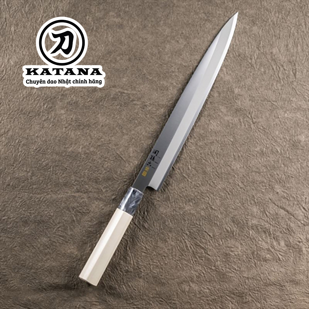 Dao Sashimi là chiếc dao chuyên thái Sashimi hay Sushi. Dao thiết kế mũi nhọn, mỏng và dài, chuyên dùng để thái Sashimi. Với cấu tạo lưỡi dài và vát 1 bên nên dao Sashimi thích hợp để thái những miếng cá sống dày, đường cắt dứt khoát, gọn gàng. Dao Sashimi thường có chiều dài từ 21cm đến 40cm giúp bạn cắt được những miếng cá to một cách dễ dàng. Dòng dao này cũng giống dao Deba có loại dành cho người thuận tay trái và người thuận tay phải.