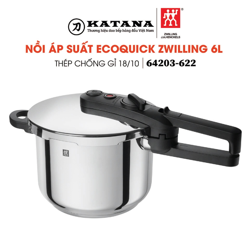 - Dòng sản phẩm nồi áp suất ZWILLING Ecoquick được làm bằng thép không gỉ 18/10 cao cấp với hàm lượng cacbon cao, bền đẹp, chống trầy xước.cùng công nghệ đóng đáy SIGMA CLASSIC giúp nhiệt lượng hấp thu nhanh và lan tỏa đều